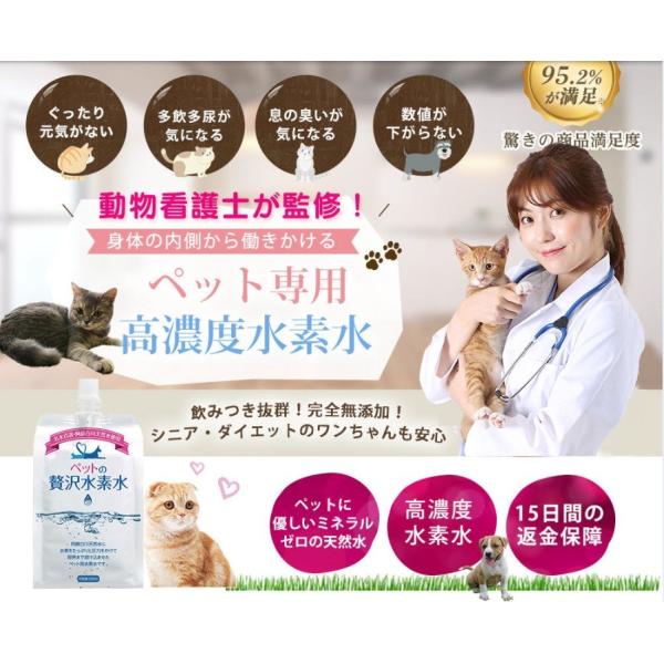 水素水 ペット用365日 あす楽&15時まで 当日出荷ミネラルゼロ 甦り水 ペット用水素水 お試しセット アルケー ペットの水素水 550ml×10本 犬 猫 保存水 腎臓サポート 最安値に挑戦 送料無料 RSL FF 3,980 円 送料無料 39ポイント (1倍) 464 (341件) ペット用水素水販売店アルケー 最安ショップを見る ペット用水素水 130ml 30本クーポン利用で500円OFFポイント3倍 水素が抜けに ペット用の水素水も販売されています。 犬や猫だけでなく、ウサギやハムスターなどの小動物、鳥などにも水素水を飲ませることができます。 今では、競馬界でも水素水は愛されていて、競馬界で活躍している馬も水素水を与えられてます。 ペットに与える1
